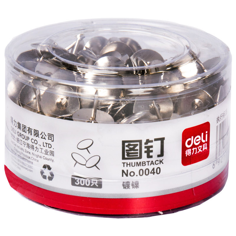 得力0040-300粒筒装镀镍图钉