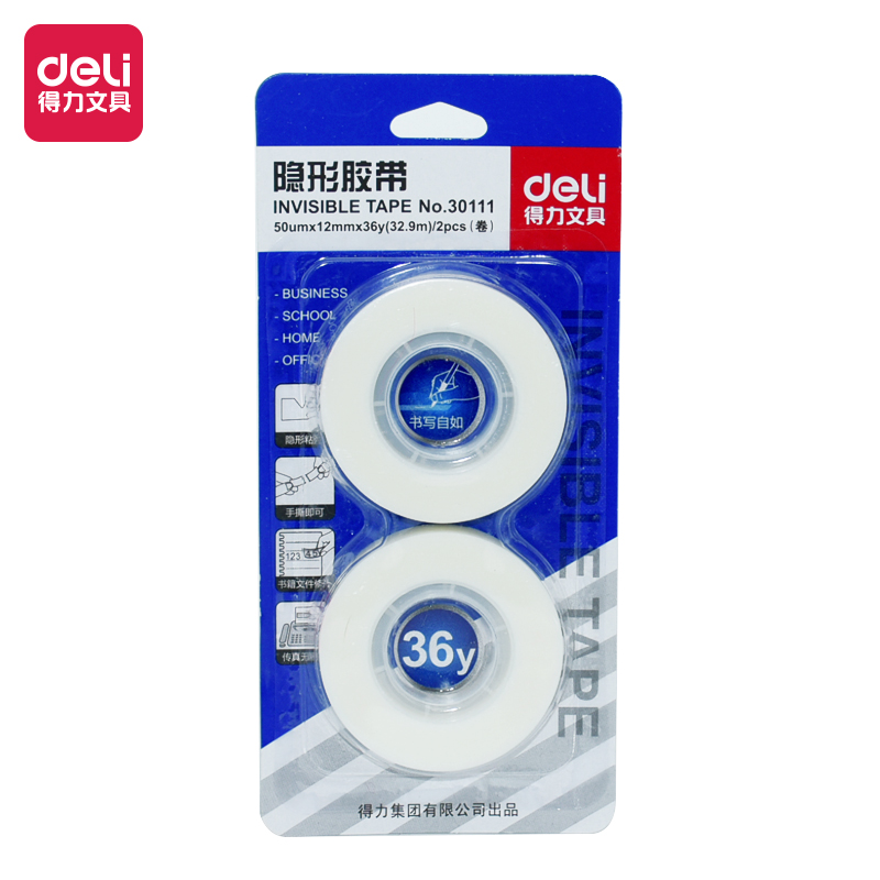 得力30001-12卷筒装文具胶带8mm*30y*38um