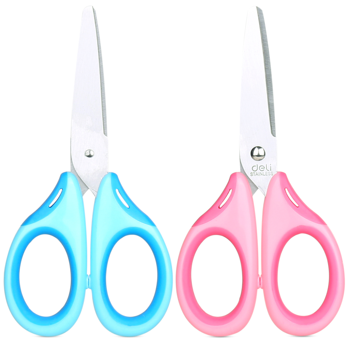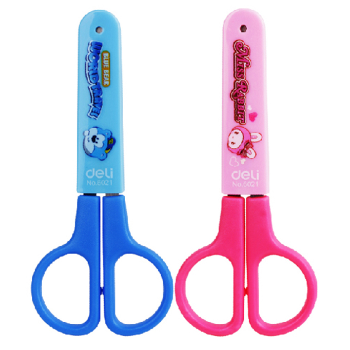 得力6069-134mm圆角刀头棒棒糖学生护套剪刀